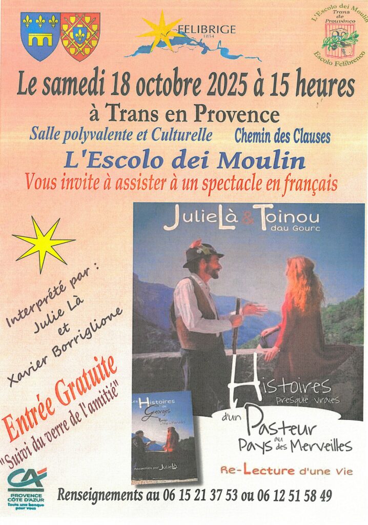 Spectacle Histoires presque vraies d’un pasteur au pays des merveilles – 18 octobre par Mairie Trans en Provence | Sep 29, 2025 La publication expire à 8h27am le 1 19 octobre 2025