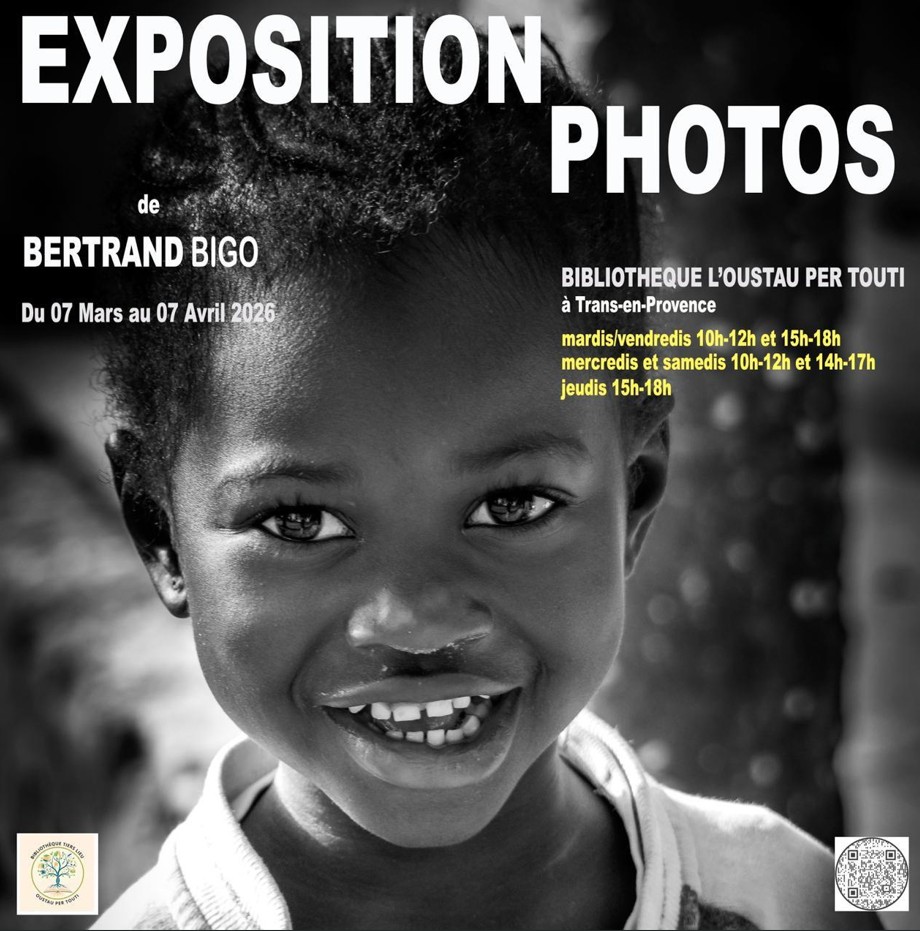 Exposition Photos de M Bertrand BIGO, Bibliothèque L’Oustau Per Touti du 7 mars au 7avril 2026. par Mairie Trans en Provence | Mar 6, 2026 La publication expire le mardi 7 avril 2026 à 12:50.